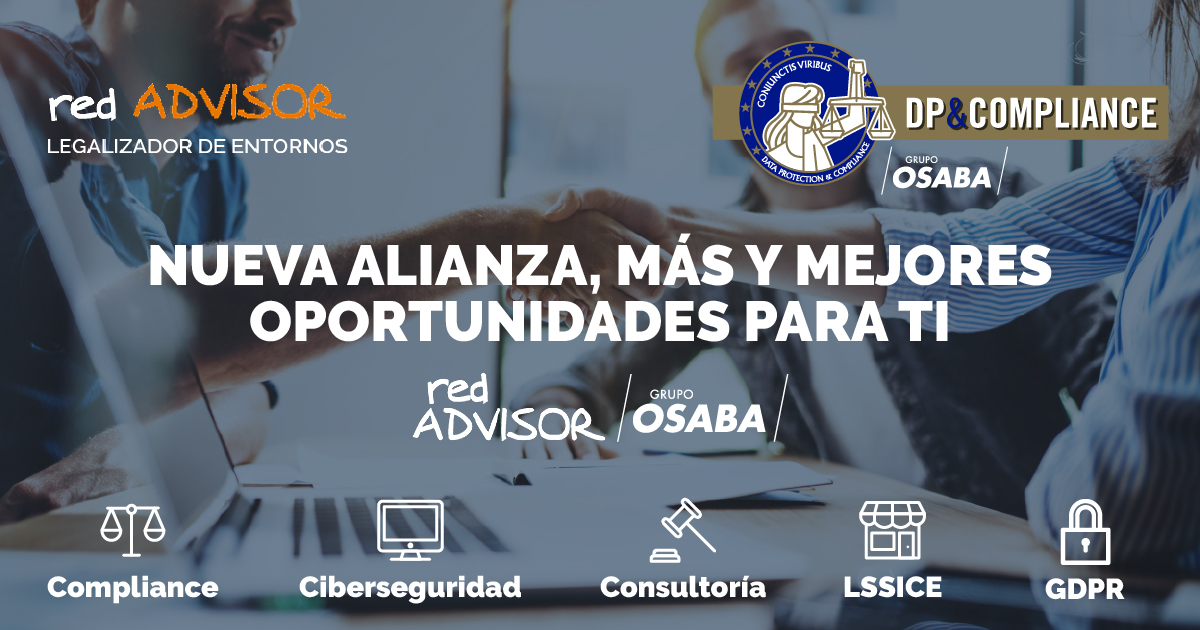 RedADVISOR y DP&Compliance de GRUPO OSABA, nos hemos aliado para mejorar. Ampliamos nuestras soluciones con servicios tecnológicos que nos permiten ofrecerte una atención integral: toda la tecnología y todo el cumplimiento legal a tu disposición.